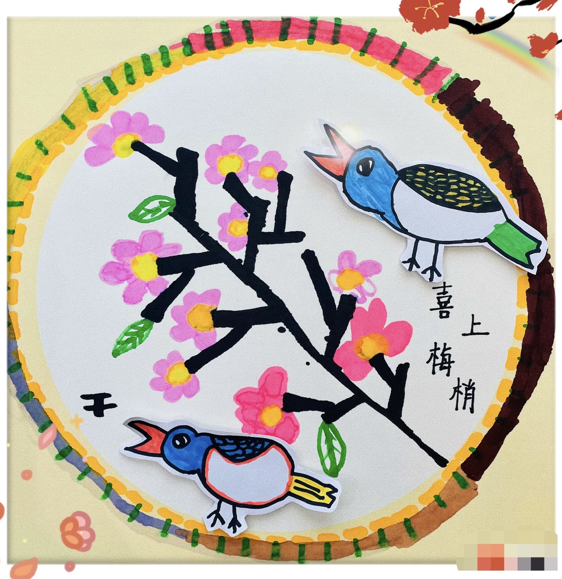 儿子今日美术课作品:喜上梅梢