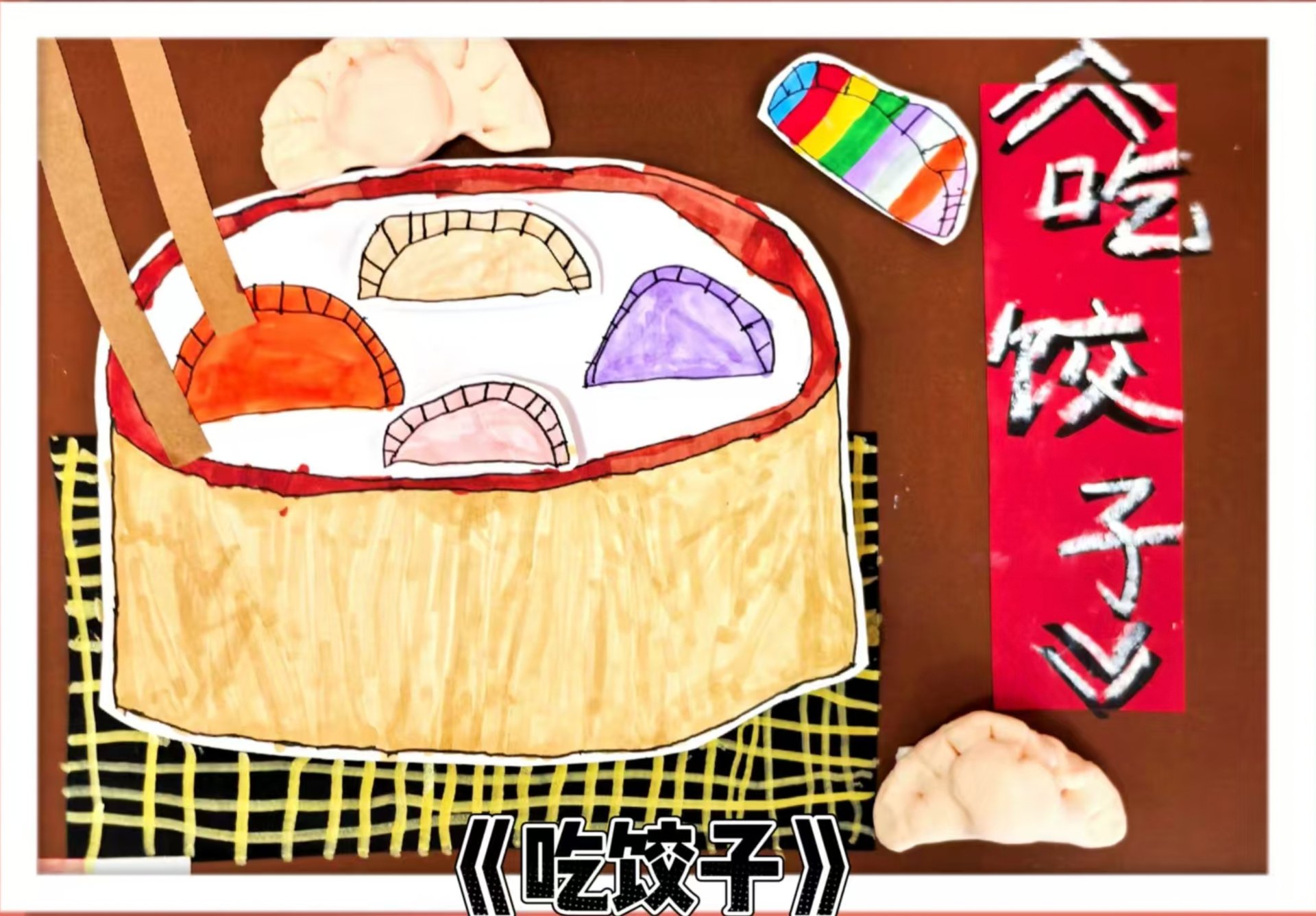 儿子今日美术课作品:吃饺子